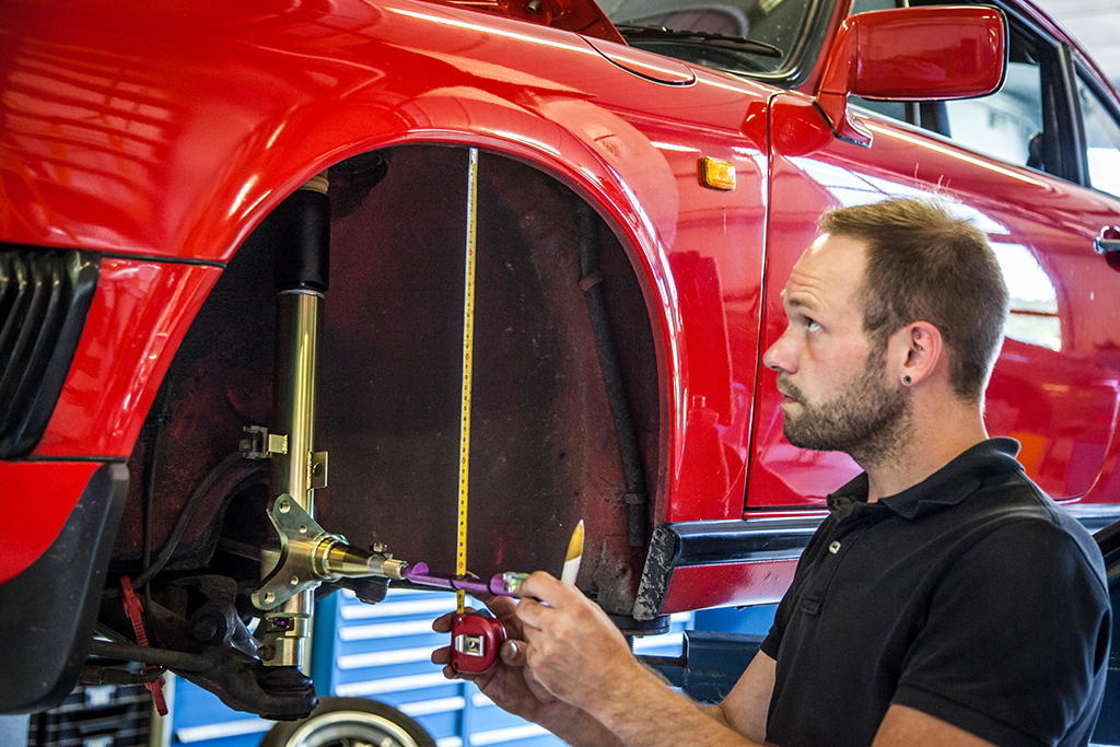 When deciding on KW, no Oldtimer driver needs to settle for the state of the art several decades ago. Depending on the vehicle-specific application, height-adjustable spring struts and damper housings made of aluminum, steel, or quenched and tempered stainless steel are combined with the optimal KW damper-valve technology (TVR-A, TVC-A, and TVCLH-A). We adjust the setup on our KW 7-post-rig and always keep objective criteria for different driving purposes in mind. In a complex reconciliation and adjustment process, we reach the respective target values without needing to drive with the sumptuous vehicle. We are therefore able to keep the final test drive to a minimum. If desired or demanded by the regulations, the coilover kit can be retrofitted to a non-adjustable damper variant after evaluation and approval of the customer. Our extensive documentation according to our QA processes and the specifications of the VdTÜV data sheet enable an individual acceptance and an entry in the vehicle documents.