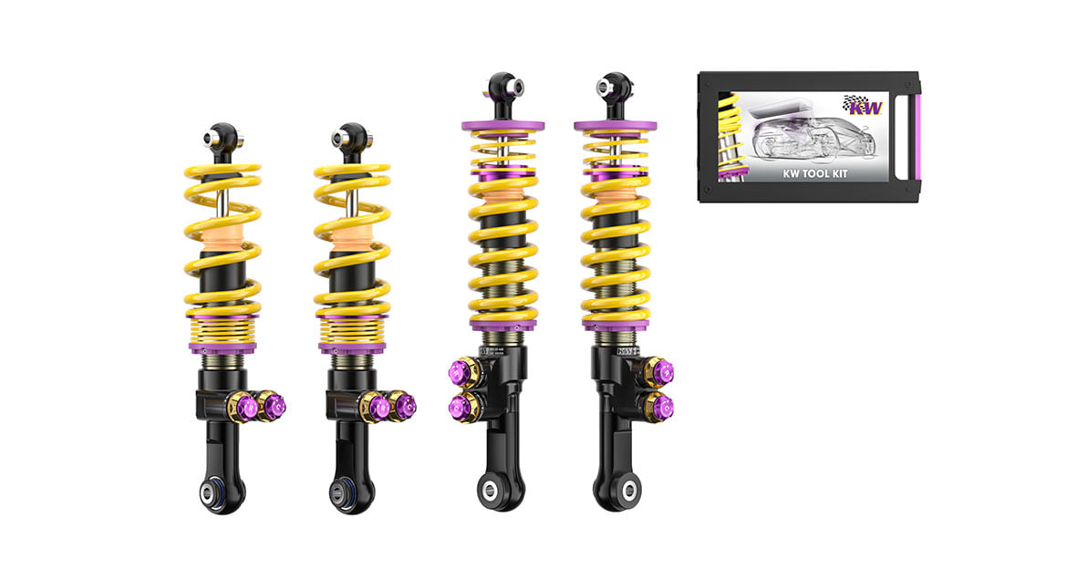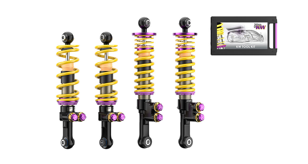 The KW V5 Clubsport is height-adjustable, and the damping setup can be separately adjusted in low-speed and high-speed compression and rebound settings according to the driver's preference, vehicle weight, track conditions, and tire characteristics.