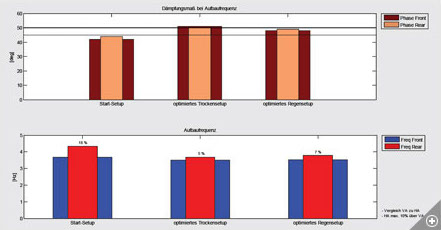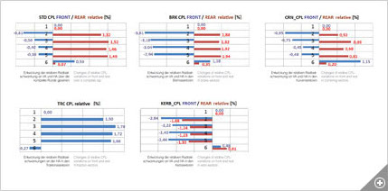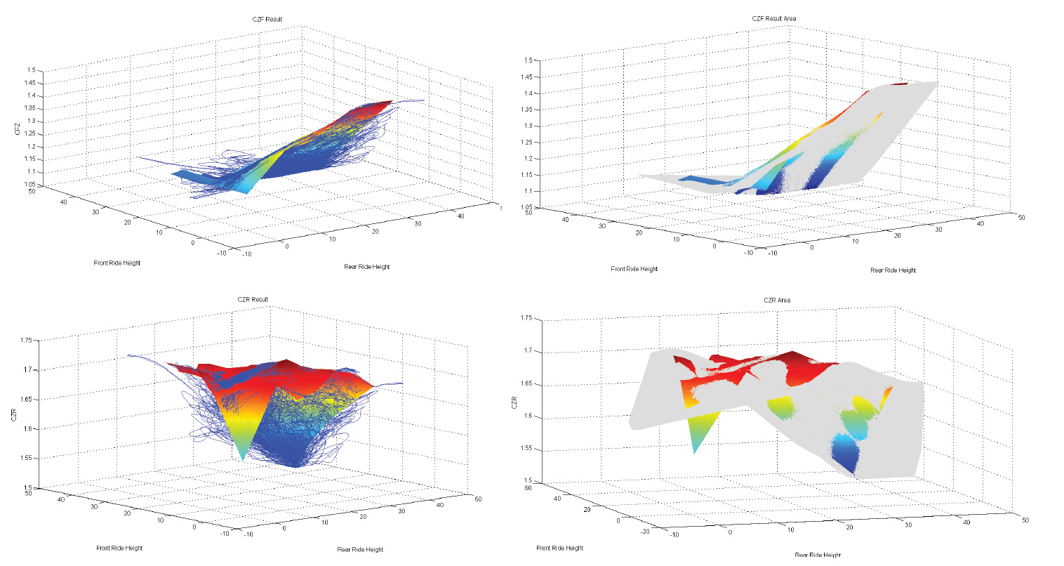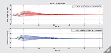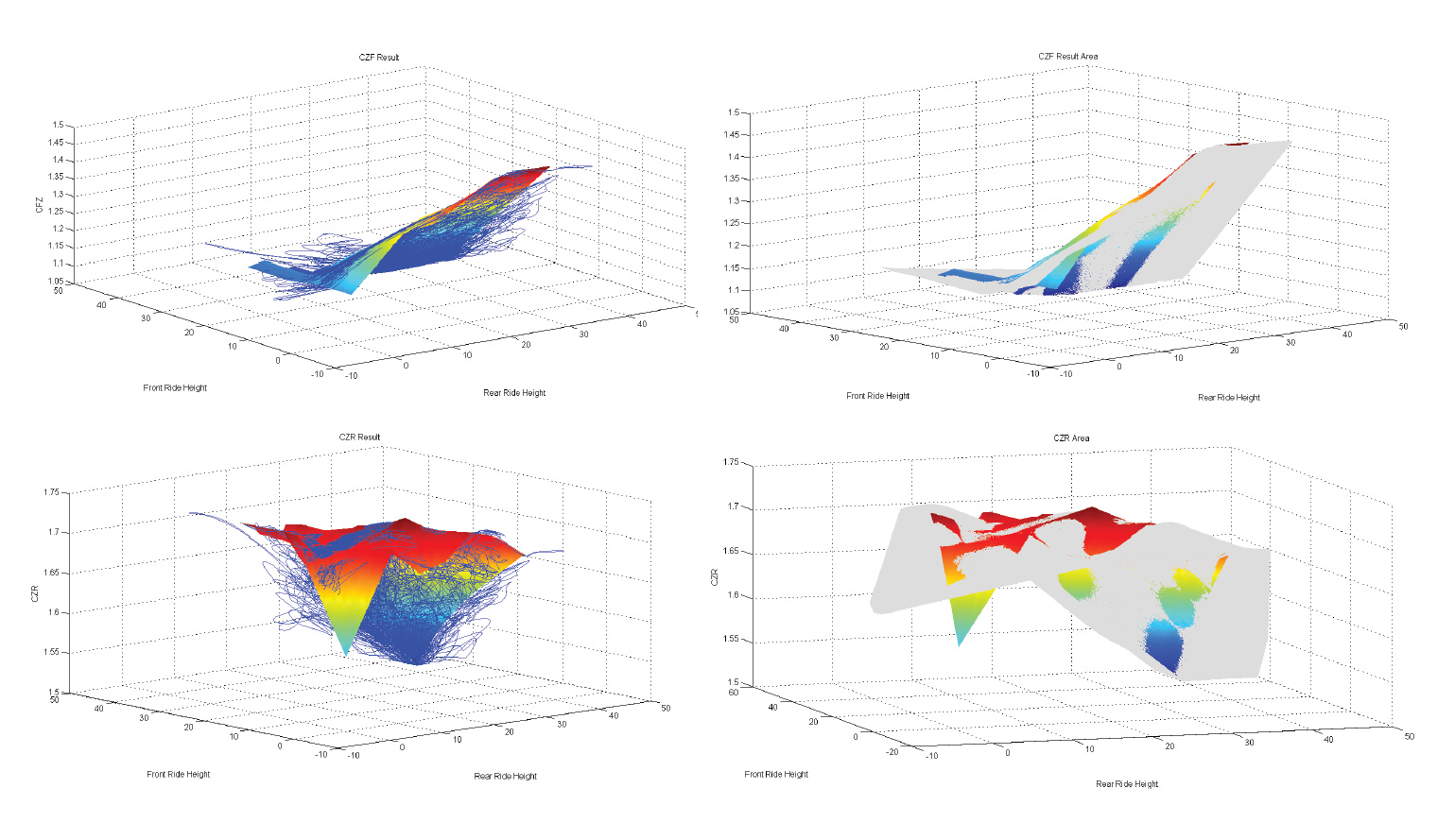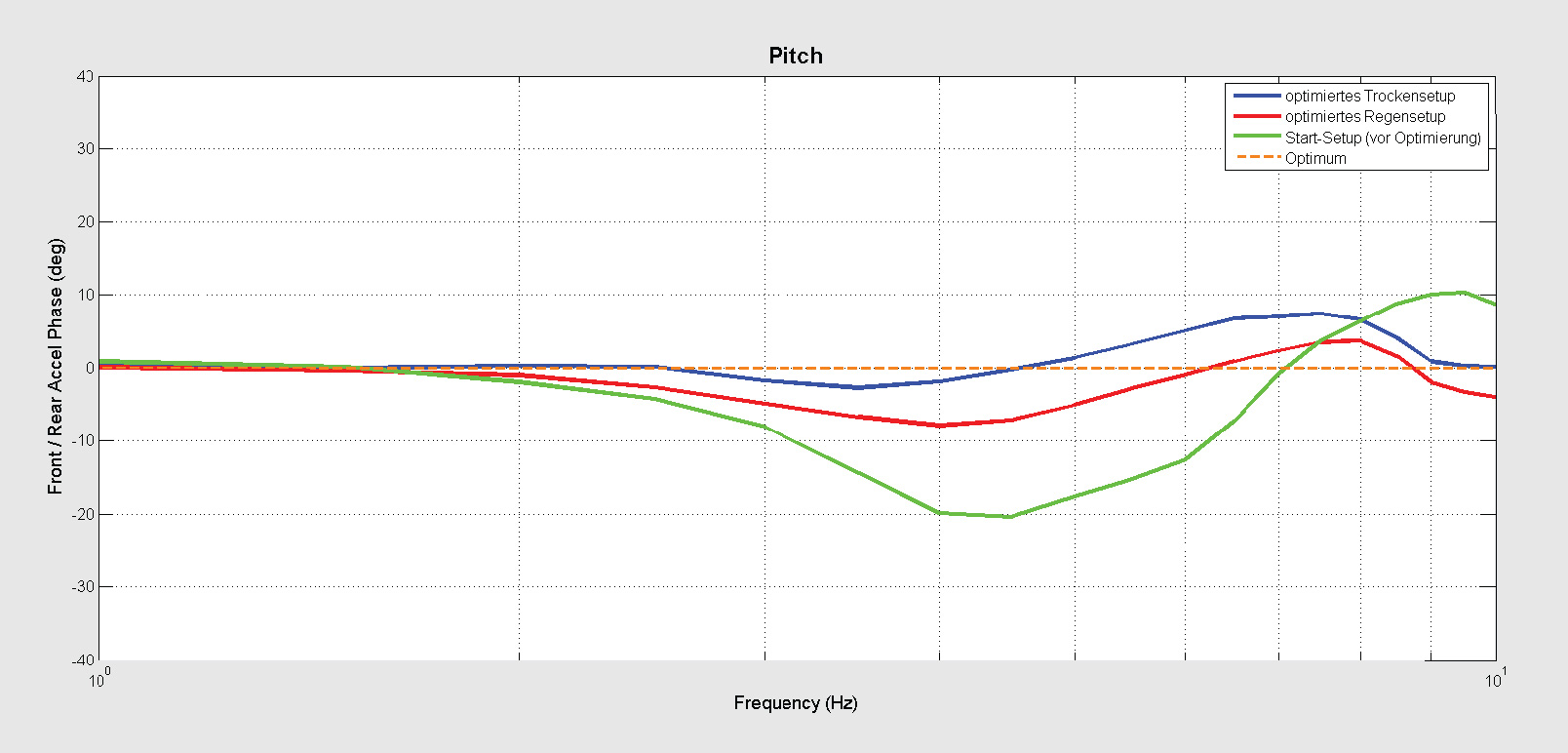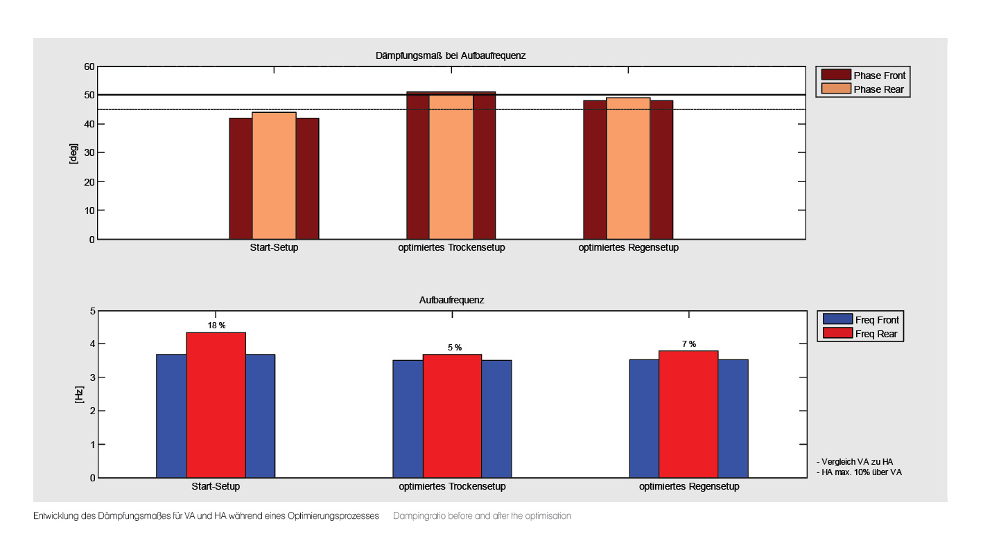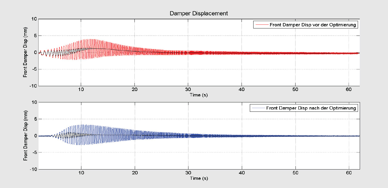 In addition to operating the 4 wheel post, additional 3 actuators are used to simulate real driving forces. Excitation of the actuators via a drive file that was created with track iteration from real track data and an aeromap. The analysis is made track specific, global and sector-wise.