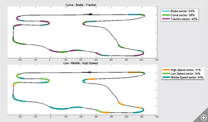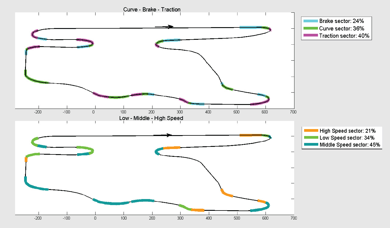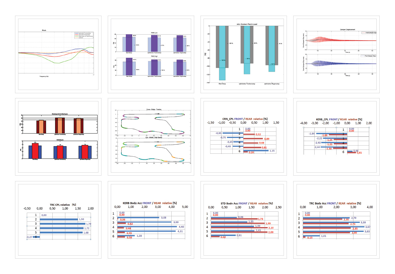 Stimulation of the actuators via a drive file that was created by track iteration from real track data. The analysis is made track-specific, global, and sector-wise.